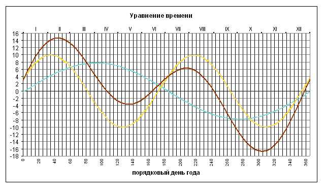 Исходя из этих рассуждений легко построить и математическое выражение для определения уравнения времени: